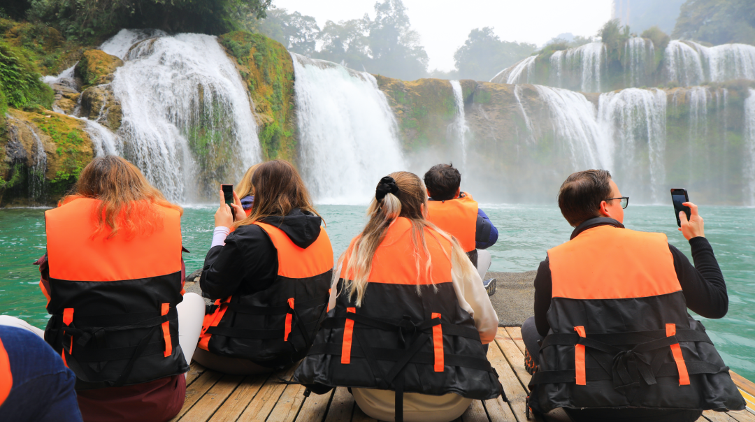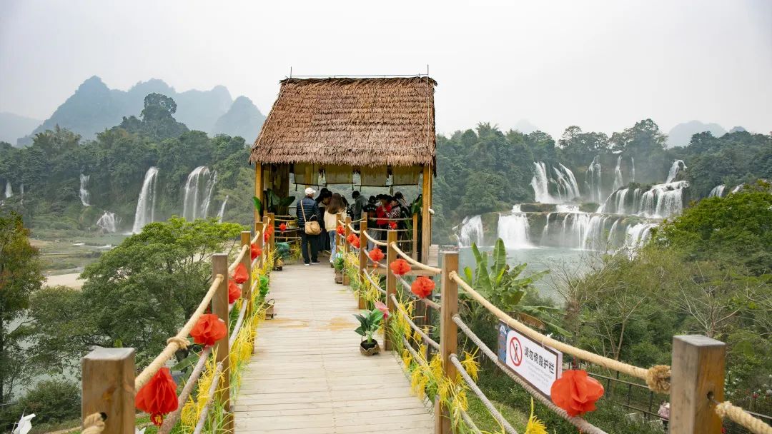 Detian Transnational Waterfalls Scenic Spot in Guangxi launched the activity of the Spring Festival Carnival on the border. Tourists wandered around in the Sino-Vietnamese Style Street, swung to the rhythm of Zhuang dance and Vietnamese folk songs, and felt the unique exotic style. They could also watch waterfalls and enjoy the wonders of nature on bamboo rafts.