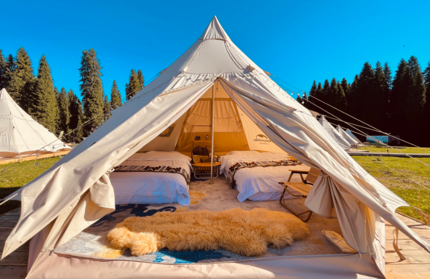 庫爾墩營(yíng)地位于小庫爾墩平臺,距喀峰大本營(yíng) 5 公里,占地 120 畝,一期項目擁有 33 間帳篷和 21 間頂奢裝配式度假屋,配備餐廳、移動(dòng)咖啡廳、移動(dòng)酒吧等公共區域,為來(lái)客打造出一處私享空間。庫爾墩營(yíng)地是中旅柏睿重點(diǎn)打造的「 全季運營(yíng)野奢營(yíng)地 」,是中旅天山走廊的核心節點(diǎn),也是中旅在新疆集景區運營(yíng)和新型度假產(chǎn)品為一體的標桿項目。