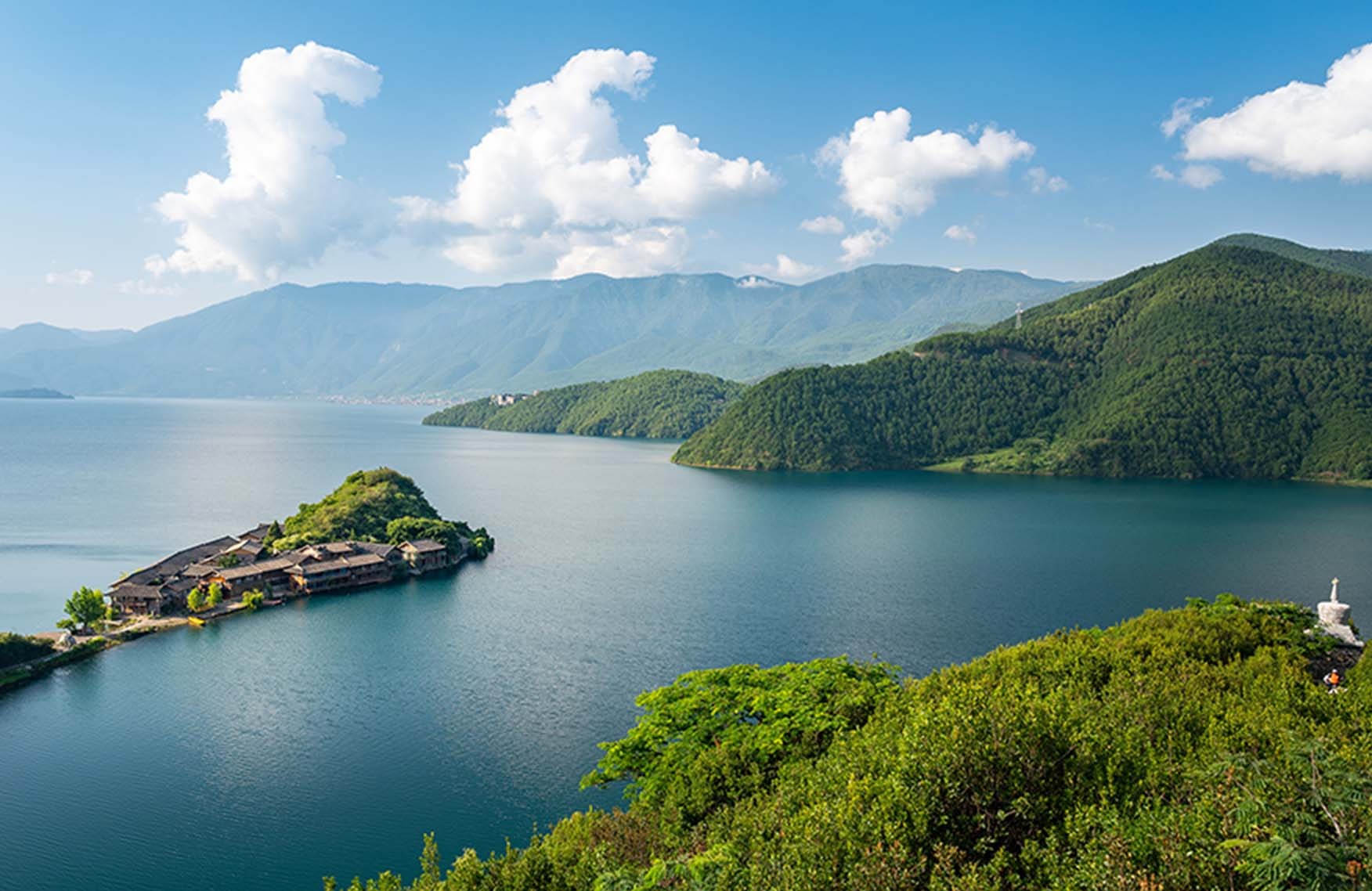 瀘沽湖面積50多平方千米,海拔2690米,湖水清澈蔚藍,被譽(yù)為高原明珠。湖中有五個(gè)全島、三個(gè)半島和一個(gè)海堤連島,形態(tài)各異,翠綠如玉。湖的西北面,是摩梭人的格姆女神山;湖的東南面,與草海連接,淺海處茂密的蘆葦隨風(fēng)蕩漾,蔟蔟的花草迎風(fēng)招展;湖周,茂密的原始森林里珍稀動(dòng)物出沒(méi)其間,給人幾分畏懼,幾分野趣;湖畔,阡陌縱橫,田園萬(wàn)頃,人們日出而作,日落而息,木摞房舍,炊煙裊裊,村寨牧歌陳陳,漁火點(diǎn)點(diǎn)。一派景象萬(wàn)千的農家農園,令人流連忘返。